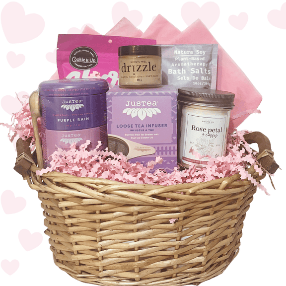 Steeped in Love is a cozy and romantic Valentine’s gift designed to help someone slow down, unwind, and feel truly cherished. Thoughtfully arranged with comforting treats and calming self-care favourites, this gift creates a warm at-home experience centred around sipping, soaking, and relaxing.
