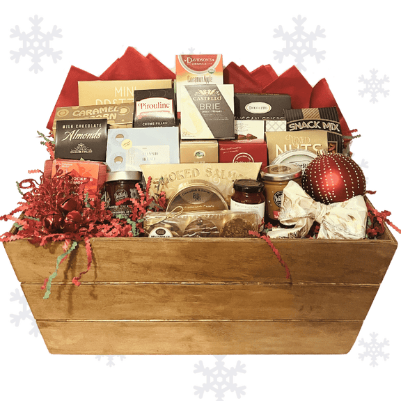 Looking to personalize your presentation? Explore our festive Finishing Touches to include wine & spirits, local specialties, or other unique Holiday gift add-ons.